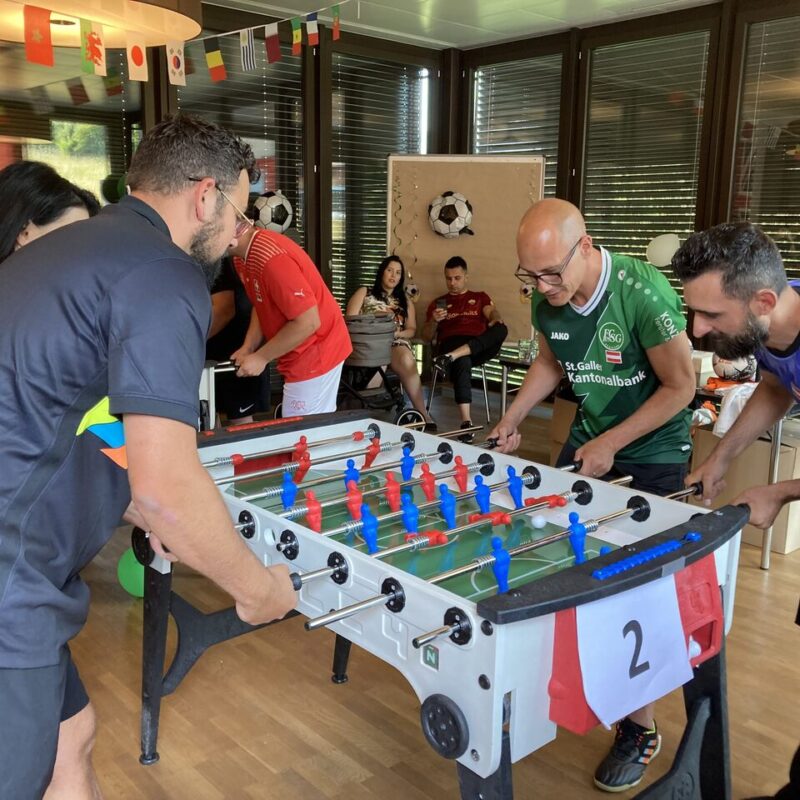 Am 09. Juni fand unser traditionelles Sommerfest unter dem Motto «Fussball» im Restaurant Schloss Café in Heerbrugg statt. Bei unserem firmeninternen Tischfussball-Turnier kamen alle Fussballfans so richtig auf ihre Kosten und durften sich den Titel des Tischfussball-Meisters erkämpfen.
