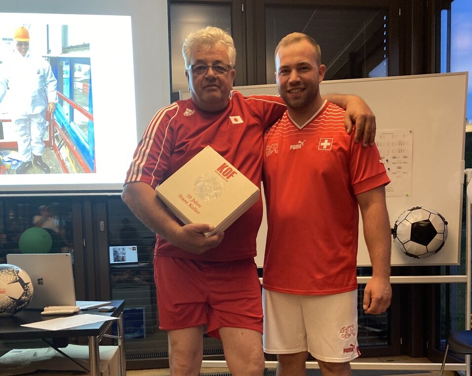 Auch vier Jubiläen durften ausgiebig gefeiert werden: Wir gratulieren Bea Koller und Franz Koller zu 20 Jahren sowie Jasin Sinani und Murat Sevim zu fünf Jahren KOF AG!